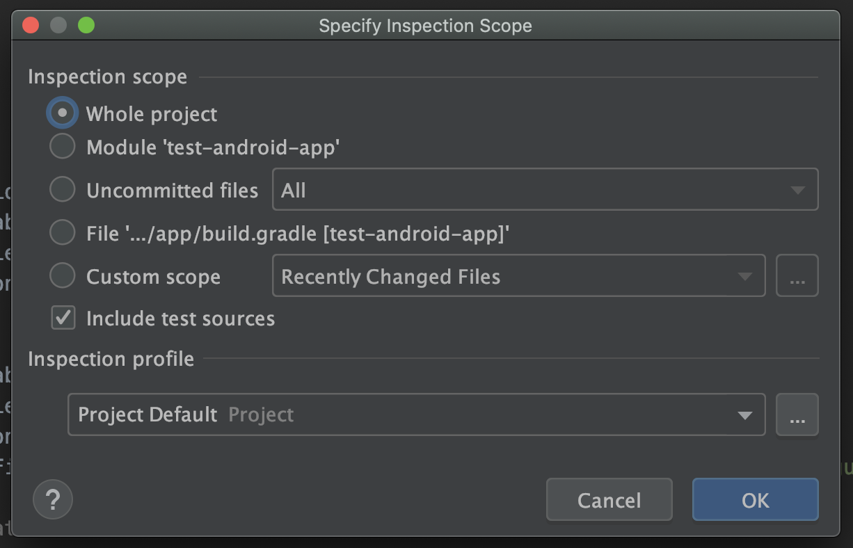 - Inspection profile : Android 업데이트로 인해 업데이트된 lint 파일로 그대로 사용 또는 범위 수정 가능